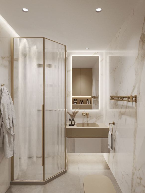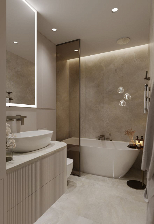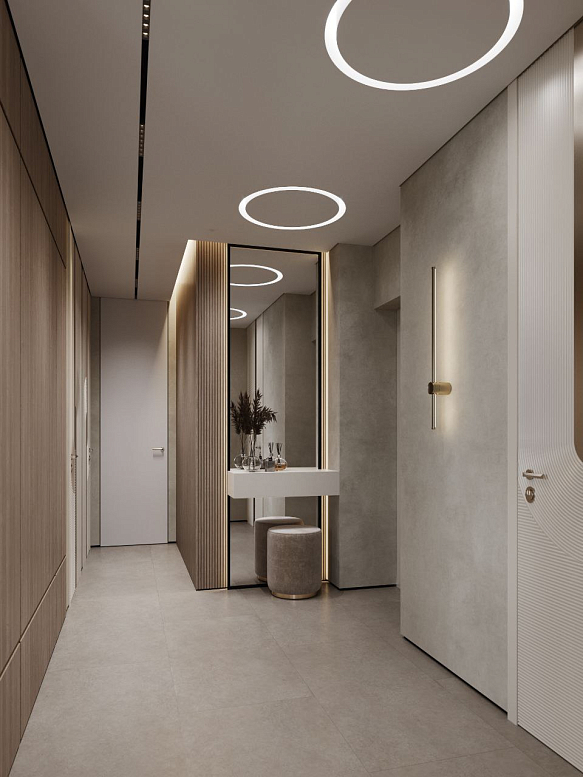 Дизайн этой квартиры в престижном комплексе высокого класса, отражает современный минималистичный стиль с элементами лофта. Интерьер выдержан в светлой, нейтральной цветовой гамме, с акцентами натуральных материалов и многоуровневой подсветкой, создающей атмосферу роскоши и комфорта.