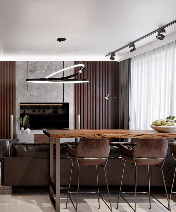 Открытая планировка пространства создает ощущение простора и свободы, идеально подходя для отдыха. Большие окна обеспечивают обилие естественного света и открывают живописные виды на город и зелёные зоны комплекса.