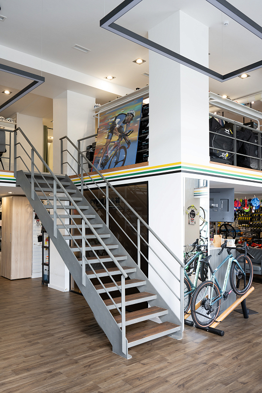 Дизайн веломагазина сочетает в себе современный стиль, функциональность и атмосферу, которая подчёркивает спортивную и городскую эстетику. Наши профессиональные дизайнеры обеспечили комфортное пространство для продажи спортинвентаря и обслуживания велосипедистов.